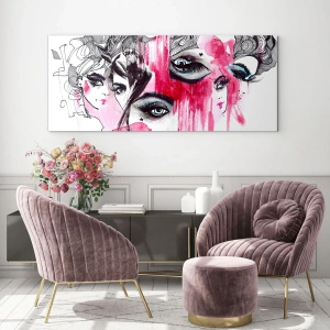 Impression sur verre - Image sur verre - Visages féminins abstraits avec des accents roses dans un style croquis. - 70x50cm - Yeux abstraits - Décoration murale moderne pour le salon et la chambre ARTTOR