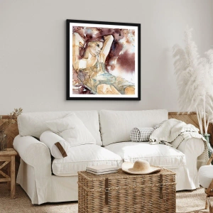 Affiche dans un cadre noir - Poster - Silhouette artistique d'une femme dans les tons marron - 50x70cm - D'humeur lilas - Décoration murale moderne pour le salon et la chambre ARTTOR