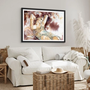 - Cette affiche représente une esquisse artistique d'une femme aux tons bruns, réalisée à l'aquarelle. Parfaite pour les intérieurs minimalistes et modernes, elle est livrée avec un cadre noir de 50 x 70 cm.
