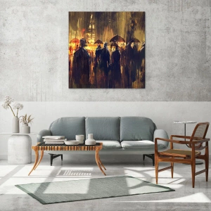 La peinture sur verre est faite sur un verre de 4 mm d'épaisseur. Les bords du verre ont une arête trapézoïdale mate. La tableau est sûr à l'utilisation et prêt à être accroché - il a des crochets en métal attachés à l'arrière du cadre et des entretoises en mousse permettant la régulation uniforme de la distance du tableau au mur.