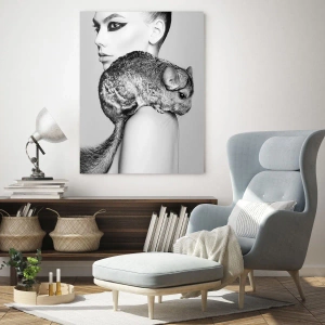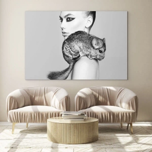 Le motif d'une femme avec un chinchilla allie classique et originalité, attirant l'attention et suscitant l'intérêt. La palette de couleurs noir et blanc ajoute profondeur et harmonie, créant une atmosphère à la fois calme et inspirante. C'est une décoration unique qui confère à votre intérieur une touche artistique.
