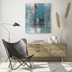 Impression sur verre - Image sur verre - Abstraction dans les tons de bleu et de gris avec des formes géométriques - 70x50cm - Eau et air - Décoration murale moderne pour le salon et la chambre ARTTOR