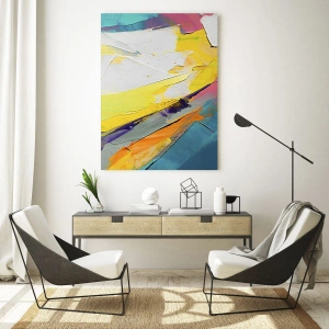 Impression sur verre - Image sur verre - Coups de pinceau abstraits en jaune, bleu et blanc - 50x70cm - Anatomie du monde - Décoration murale moderne pour le salon et la chambre ARTTOR