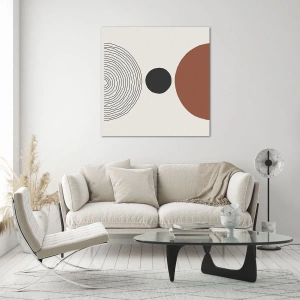 Le minimalisme du tableau « Au centre de l'attention » le rend idéal pour les intérieurs modernes, industriels et scandinaves. Il s'intégrera parfaitement dans les salons, les bureaux, les chambres et les espaces commerciaux, où sa présence confèrera à l'intérieur un caractère unique. Le fond beige se marie naturellement avec les autres couleurs, ce qui permet de l'assortir facilement à différentes palettes de couleurs. La forme et le rythme graphique des éléments créent une atmosphère dynamique et apaisante, idéale pour les espaces de travail et de détente.
