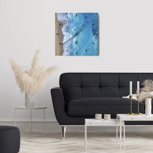 Horloge murale - Pendule murale - Vue aérienne des vagues de l'océan s'écrasant sur une plage de sable - 30x30cm - La force du bleu - Décoration murale moderne pour le salon, la cuisine et la chambre ARTTOR