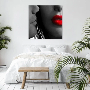 Impression sur toile - Image sur toile - Gros plan des visages d'une femme et d'un homme aux lèvres rouges. - 50x70cm - Face à face - Décoration murale moderne pour le salon et la chambre ARTTOR