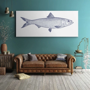 L'impression sur toile « Salutations des mers du Nord » est une décoration unique qui fait subtilement référence à la nature et au style nautique. L'élément central est une illustration d'un poisson soigneusement réalisée dans des tons bleus, qui contraste avec le fond clair, créant une composition à la fois efficace et minimaliste.