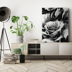 Impression sur toile - Image sur toile - Roses noires et blanches dans une composition élégante - 50x70cm - Toujours une reine - Décoration murale moderne pour le salon et la chambre ARTTOR