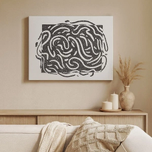 Impression sur toile - Image sur toile - Abstraction en noir et blanc dans un style géométrique - 70x50cm - Abstraction : la danse de la joie - Décoration murale moderne pour le salon et la chambre ARTTOR