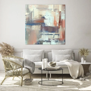Impression sur verre - Image sur verre - Abstraction colorée avec des coups de pinceau horizontaux et verticaux - 70x50cm - Atteindre la lumière - Décoration murale moderne pour le salon et la chambre ARTTOR