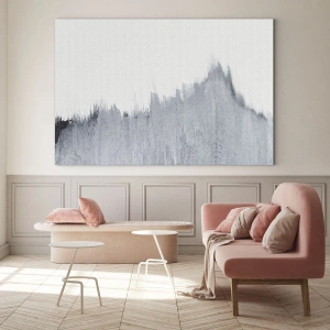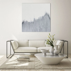 - Une peinture abstraite aux nuances de gris, évoquant une subtile notation. Une composition pleine de mystère et d'élégance, maintenue dans une esthétique minimaliste et moderne.