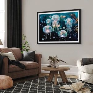 Affiche dans un cadre noir - Poster - Méduses délicates dans le monde sous-marin - 70x50cm - Ballon sous-marin - Décoration murale moderne pour le salon et la chambre ARTTOR