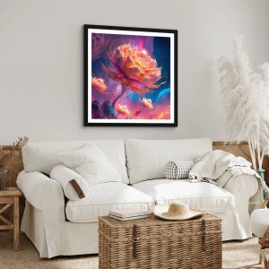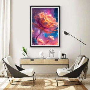 Affiche dans un cadre noir - Poster - Fleurs fantastiques dans un paysage cosmique - 70x50cm - Un autre monde - Décoration murale moderne pour le salon et la chambre ARTTOR