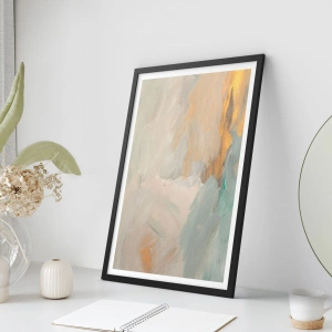 Affiche dans un cadre noir - Poster - Traits abstraits délicats dans des tons de blanc et d'or - 70x50cm - Abstraction – le pays de la douceur - Décoration murale moderne pour le salon et la chambre ARTTOR