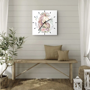 Horloge murale - Pendule murale - Une licorne aux couleurs pastel entourée de fleurs - 30x30cm - Invitation au monde des contes de fées - Décoration murale moderne pour le salon et la chambre ARTTOR