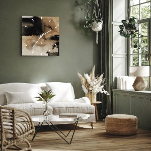 Horloge murale - Pendule murale - Abstraction marron et noire avec un effet de peinture renversée - 30x30cm - Une abstraction intrigante - Décoration murale moderne pour le salon, la cuisine et la chambre ARTTOR