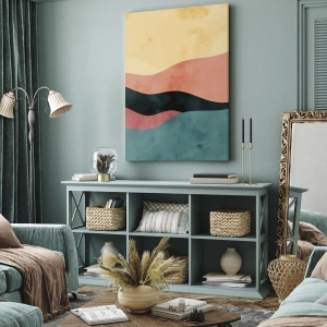 - Une abstraction moderne avec des vagues aux couleurs pastel, combinant des nuances de turquoise, de rose et de jaune. Un motif décoratif idéal pour les intérieurs minimalistes.