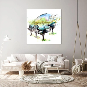 Le tableau « Aquarelle artistique d'un piano avec la nature en arrière-plan » est une œuvre qui séduit par sa subtilité et, en même temps, par la profondeur de son message. C'est une combinaison de musique, de nature et d'art dans sa plus belle forme, créant une atmosphère unique dans votre intérieur.