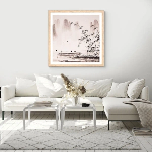 Affiche dans un chêne clair - Poster - Le silence des rizières - 60x60 cm