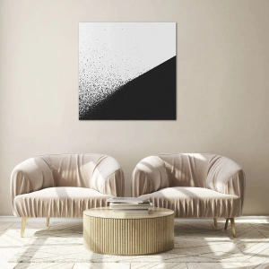 La peinture sur verre est faite sur un verre de 4 mm d'épaisseur. Les bords du verre ont une arête trapézoïdale mate. La tableau est sûr à l'utilisation et prêt à être accroché - il a des crochets en métal attachés à l'arrière du cadre et des entretoises en mousse permettant la régulation uniforme de la distance du tableau au mur.