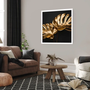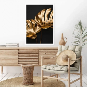 • Abstrait, feuilles d'or, feuille de Monstera, Botanique, Pour le bureau, Pour le bureau, Pour la salle à manger, Pour le hall, Pour le salon, Pour la chambre, Or noir, Horizontal