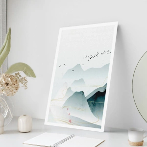 Affiche - Poster - Montagnes et oiseaux délicats dans une composition minimaliste - 50x70cm - Au-delà des sommets - Décoration murale moderne pour le salon et la chambre ARTTOR