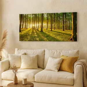 Impression sur toile - Image sur toile - Le soleil couchant dans la forêt de feuillus - 50x70cm - Toutes les photographies de printemps - Décoration murale moderne pour le salon et la chambre ARTTOR