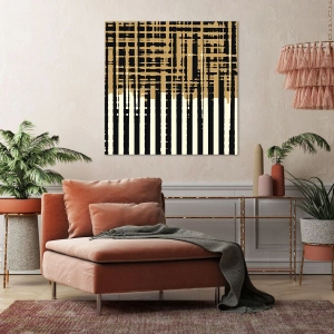 Impression sur toile - Image sur toile - Lignes abstraites en noir, beige et blanc - 50x70cm - Abstraction architecturale - Décoration murale moderne pour le salon et la chambre ARTTOR