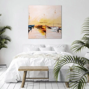 « Soir au port » est une excellente proposition pour les amateurs de motifs maritimes et d'esthétique picturale. Le motif des bateaux et du soleil couchant crée un espace empreint d'harmonie et de détente, soulignant le caractère unique de votre intérieur.