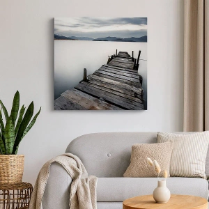 Le motif d'une jetée face à un lac symbolise la paix, l'harmonie et la réflexion. Cette décoration apporte une atmosphère de paix et de proximité avec la nature aux intérieurs, favorisant la détente et les moments de contemplation. Ce tableau s'intègre parfaitement aux intérieurs aux couleurs neutres, apportant élégance et équilibre.