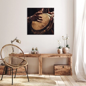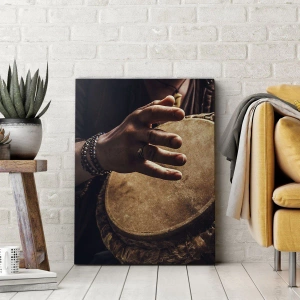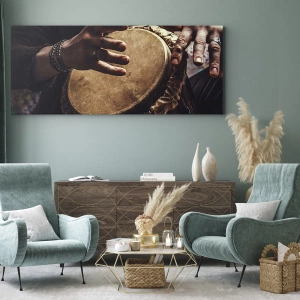 Impression sur toile - Image sur toile - Mains jouant sur un djembé traditionnel - 120x50cm - Au rythme du coeur - Décoration murale moderne pour le salon et la chambre ARTTOR