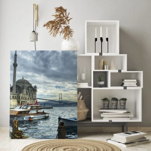 La peinture sur verre est faite sur un verre de 4 mm d'épaisseur. Les bords du verre ont une arête trapézoïdale mate. La tableau est sûr à l'utilisation et prêt à être accroché - il a des crochets en métal attachés à l'arrière du cadre et des entretoises en mousse permettant la régulation uniforme de la distance du tableau au mur.