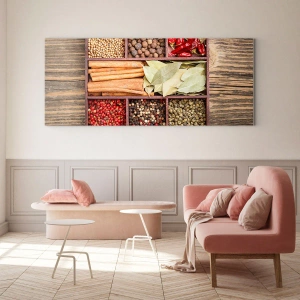 Que vous souhaitiez souligner le caractère culinaire de votre cuisine, ajouter une touche artistique ou créer une atmosphère chaleureuse, l'impression Épices colorées dans des compartiments en bois sera le choix idéal. C'est une décoration qui ravit, inspire et reste gravée dans les mémoires.