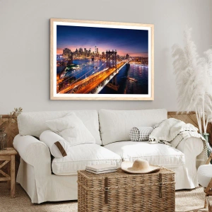 Affiche dans un chêne clair - Poster - Un pont lumineux au cœur de la ville - 50x70 cm