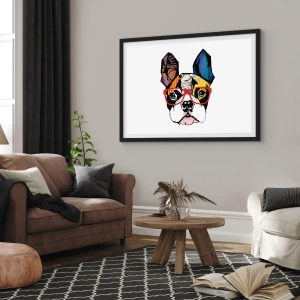 Le motif pop art d'un chien à lunettes est un excellent choix pour les amateurs d'art contemporain et de solutions originales. Les couleurs vibrantes et l'approche artistique du thème font de cette affiche une idée cadeau idéale.