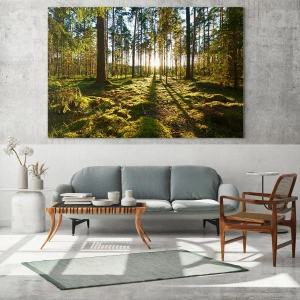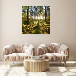 Impression sur verre - Image sur verre - Les rayons du soleil pénètrent à travers les arbres de la forêt - 50x70cm - … Derrière les sept forêts - Décoration murale moderne pour le salon et la chambre ARTTOR