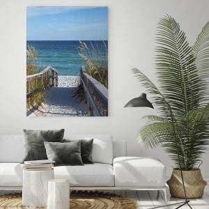 Impression sur verre - Image sur verre - Chemin vers la plage avec vue sur la mer - 50x70cm - Au soleil, sous le vent - Décoration murale moderne pour le salon et la chambre ARTTOR