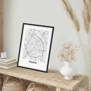 Affiche dans un cadre noir - Poster - Plan de ville minimaliste en noir et blanc - 70x50cm - Fleur de Paris - Décoration murale moderne pour le salon et la chambre ARTTOR