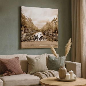 Impression sur toile - Image sur toile - Pont cyclable sur le canal en sépia - 50x70cm - Ambiance hollandaise - Décoration murale moderne pour le salon et la chambre ARTTOR