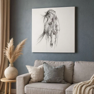 Impression sur toile - Image sur toile - Croquis en noir et blanc d'un cheval au galop - 50x70cm - D'un trot gracieux - Décoration murale moderne pour le salon et la chambre ARTTOR