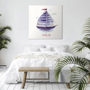 Impression sur toile - Image sur toile - Une aquarelle représentant un voilier sur l'eau avec une inscription délicate - 50x70cm - Plein de voiles et d’eau calme - Décoration murale moderne pour le salon et la chambre ARTTOR