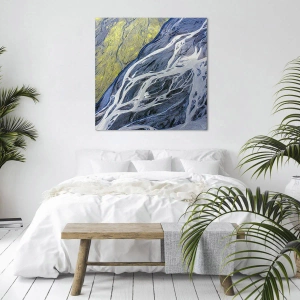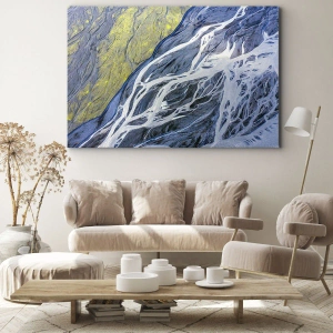 Impression sur toile - Image sur toile - Vue aérienne abstraite des lits de rivières sinueux - 100x70cm - Peintures rupestres de la nature - Décoration murale moderne pour le salon et la chambre ARTTOR