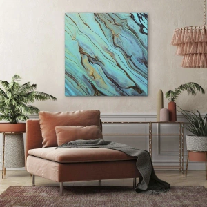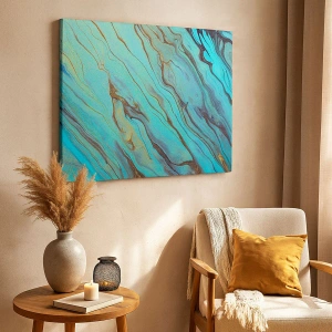 Impression sur toile - Image sur toile - Vagues abstraites dans des tons turquoise et or - 50x70cm - Marée turquoise - Décoration murale moderne pour le salon et la chambre ARTTOR