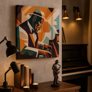 Impression sur toile - Image sur toile - Musicien abstrait jouant du piano dans des couleurs chaudes. - 50x70cm - C’est tout le jazz - Décoration murale moderne pour le salon et la chambre ARTTOR