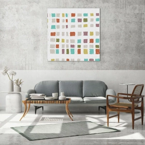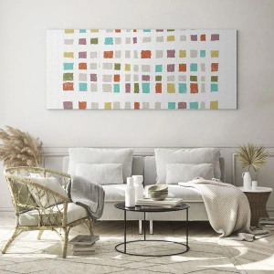 Impression sur verre - Image sur verre - Mosaïque colorée de carrés sur fond blanc dans un style abstrait - 50x70cm - Jeu inconnu - Décoration murale moderne pour le salon et la chambre ARTTOR