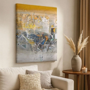 Impression sur toile - Image sur toile - Abstraction avec des nuances dominantes de jaune et de gris - 70x50cm - Tout se met en place - Décoration murale moderne pour le salon et la chambre ARTTOR