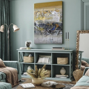 - Un tableau abstrait aux tons jaunes et gris, alliant modernité et élégance. Idéal pour tout intérieur, il apporte harmonie, dynamisme et expressivité.