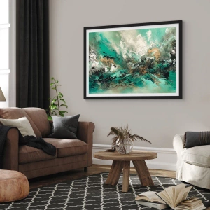 Affiche dans un cadre noir - Poster - Composition abstraite dans les tons de vert et d'or - 50x70cm - Ressac émeraude et noir - Décoration murale moderne pour le salon et la chambre ARTTOR