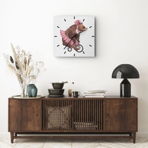 Horloge murale - Pendule murale - Un ours en peluche dans une jupe rose sur un vélo de style rétro - 30x30cm - Quel cirque ! - Décoration murale moderne pour le salon et la chambre ARTTOR