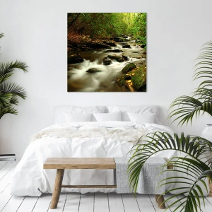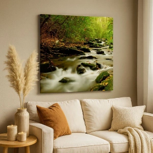Impression sur toile - Image sur toile - Un ruisseau forestier coulant entre des pierres entourées de verdure - 120x80cm - Comme de l'argent liquide - Décoration murale moderne pour le salon et la chambre ARTTOR